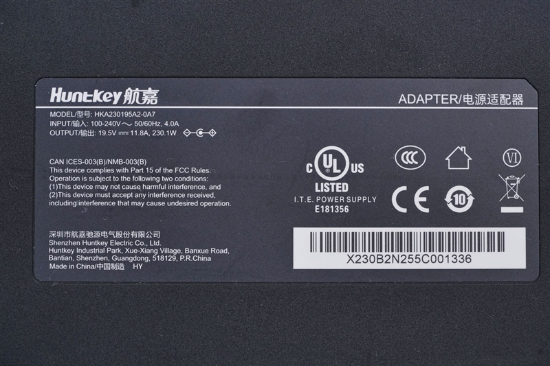 电源适配器,规格19.5V11.8A、最高输出功率230W。