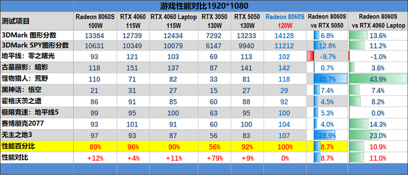 五、Radeon 8060S游戏性能测试:远超RTX 4060 Laptop